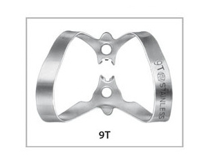 Spona typu T ("Tiger") na labiálnu oblasť. Spony na koferdamy Fit Rubberdam sú vyrobené z 0,66 mm hrubej nehrdzavejúcej ocele a každá je presne a účinne uspôsobená pre konkrétny typ zubu.