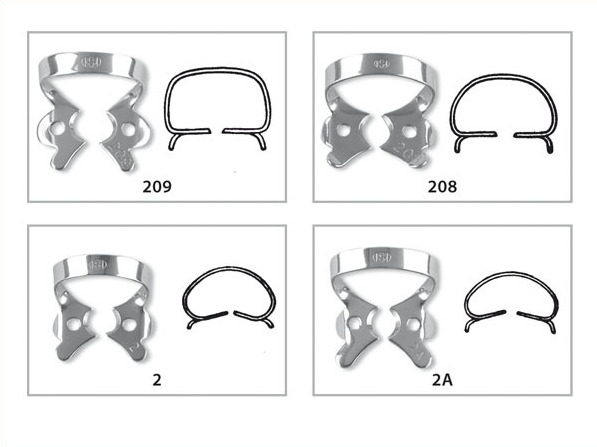 Spona s krídelkami na premoláre.Spony na koferdamy Fit Rubberdam sú vyrobené z 0,66 mm hrubej nehrdzavejúcej ocele a každá je presne a účinne uspôsobená pre konkrétny typ zubu.