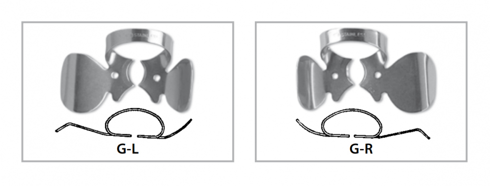 Súprava 2 spôn, pravá a ľavá s držiakom na gázu. Spony na koferdamy Fit Rubberdam sú vyrobené z 0,66 mm hrubej nehrdzavejúcej ocele a každá je presne a účinne uspôsobená pre konkrétny typ zubu.