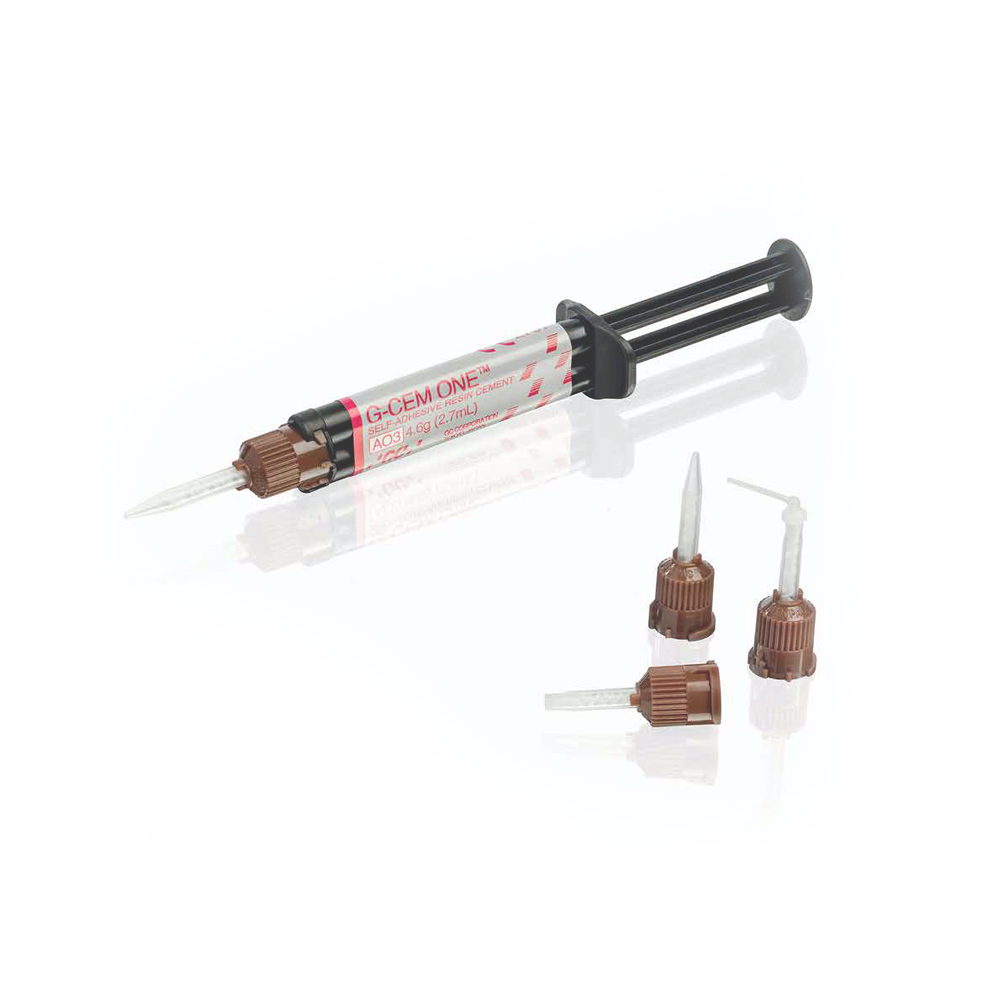 G-CEM ONE je univerzálny samoadhezívny živicový cement, jednoduchý na používanie, s vysokou pevnosťou väzby a vynikajúcou schopnosťou duálneho tuhnutia. Má široké možnosti využitia aj v zložitých klinických situáciách vďaka iniciátoru GC Touch Cure v doplnkovom G-CEM ONE Adhesive Enhancing Primer, ktorý zvyšuje toleranciu vlhkosti.