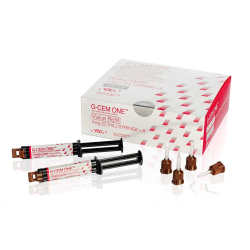 G-CEM ONE je univerzálny samoadhezívny živicový cement, jednoduchý na používanie, s vysokou pevnosťou väzby a vynikajúcou schopnosťou duálneho tuhnutia. Má široké možnosti využitia aj v zložitých klinických situáciách vďaka iniciátoru GC Touch Cure v doplnkovom G-CEM ONE Adhesive Enhancing Primer, ktorý zvyšuje toleranciu vlhkosti.