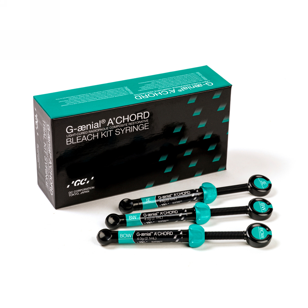 Okrem svojich 5 základných odtieňov rozširuje G-aenial A’CHORD svoje portfólio o 2 cervikálne odtiene pre starších pacientov, 3 opákne pre maskovanie diskolorácií, 2 odtiene skloviny pre prirodzenú translucenciu a 2 odtiene po bielení „bleach“ pre jasnejšie úsmevy, čo umožňuje vytvárať neviditeľné výplne aj pri náročných prípadoch.