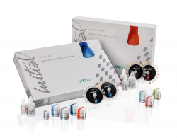 Tekutiny na dofarbovanie zirkóniových náhrad GC Initial ZR, balenie 50 ml; značkovacie tekutiny 25 ml.