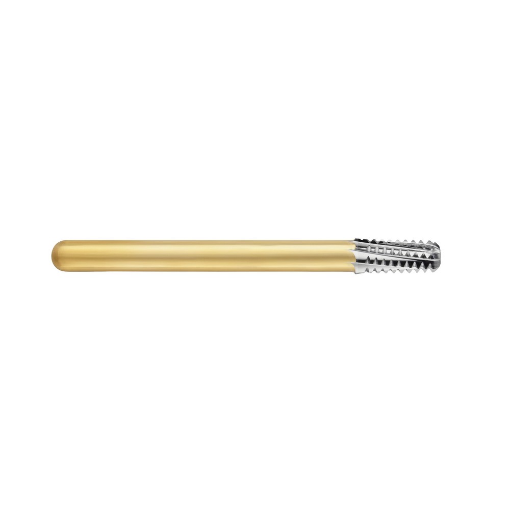 Tvrdokovový vrták v tvare valca so zaobleným koncom, mandrel FG, dĺžka 19 mm, priemer 1,0 mm.