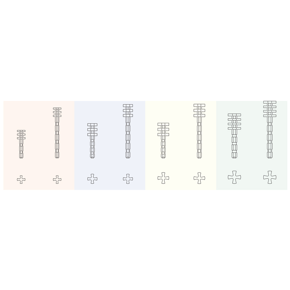 Veľkostne a typovo koordinované nástroje zaisťujú spoľahlivé vytvorenie čapu a dostavby.