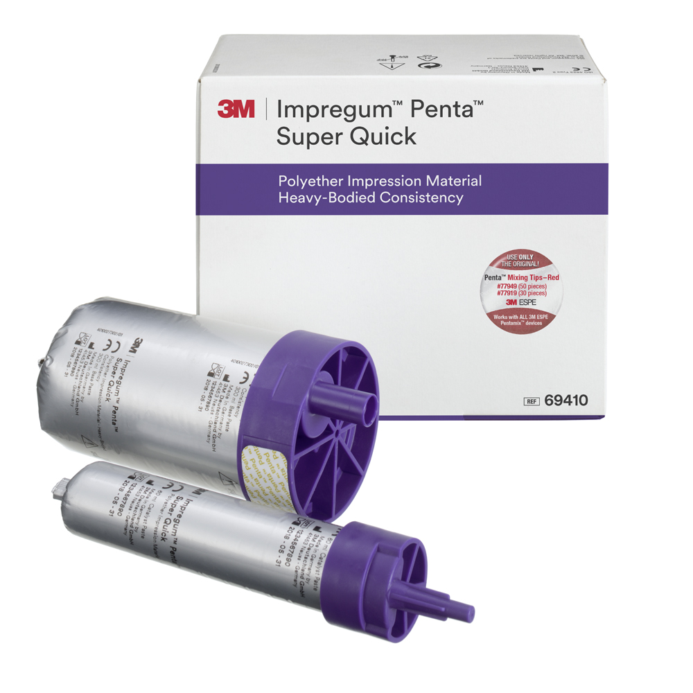 Polyéterové odtlačkové hmoty ImpregumTM PentaTM - etablované na dentálnom trhu už mnoho rokov a opakovane ocenené prestížnymi ratingovými inštitúciami - sa prakticky stali synonymom pre špičkové strojovo miešané odtlačkové hmoty. Vďaka ich unikátnym vlastnostiam pomáhajú hmoty Impregum zubným lekárom dosiahnuť vynikajúce výsledky v protetickom ošetrení. Hmoty sú určené na miešanie a dávkovanie v systéme PentamixTM 3M ESPE.