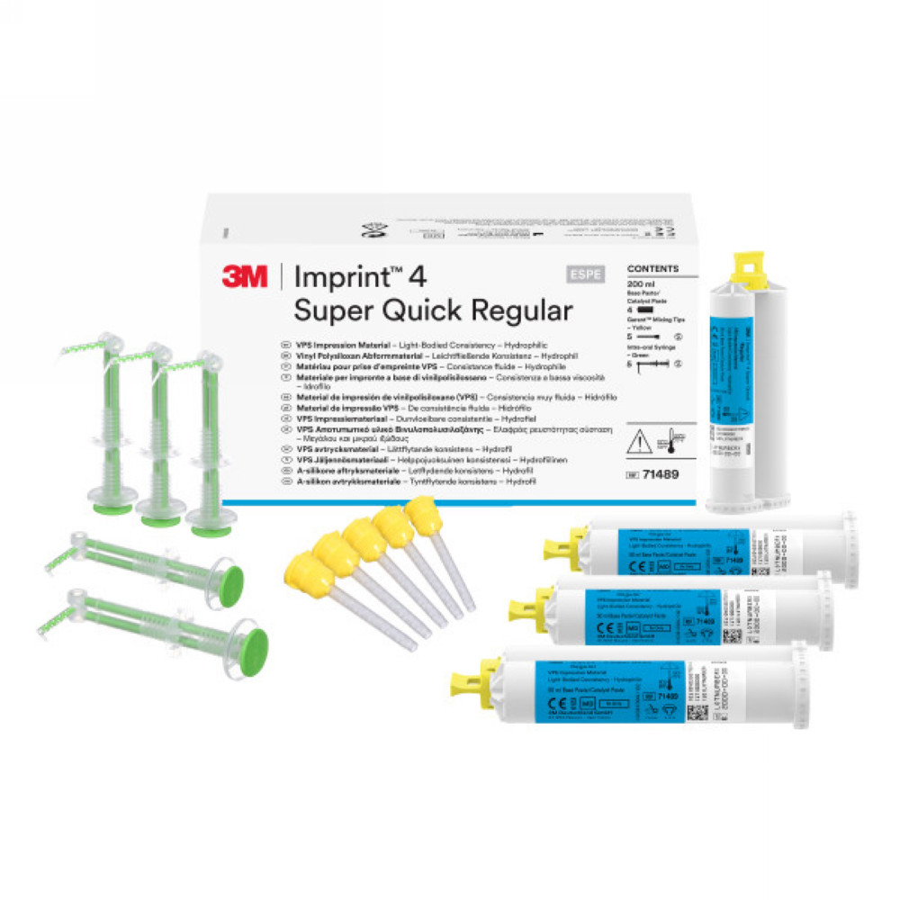 popis: Imprint 4 Super Quick Regular (4ks krém 50 ml, 5x miešacia kanyla žltá, 5x 3M™Intraorálna striekačka zelená) Katalógové číslo výrobcu: 71489 |