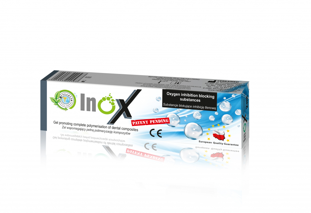 INOX chráni povrch kompozitov blokovaním prístupu kyslíka počas procesu vytvrdzovania svetlom. Týmto spôsobom sa na kompozitnom povrchu nevytvára inhibičná vrstva, takže polymeračný proces nie je inhibovaný a môže prebiehať správne.