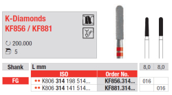 Fréza na celokeramické / zirkónové korunky – vysoká stabilita špeciálneho zrna vytvára predpoklady pre vynikajúcu životnosť nástrojov K-Diamond. Nové galvanické spájanie zabraňuje predčasnému vylomeniu diamantového zrna. To vytvára bezkonkurenčnú schopnosť na dokonalé, rýchle a spoľahlivé rezanie.