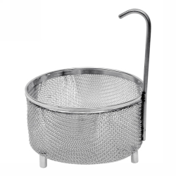 Na uloženie ultrazvukovo čisteného materiálu. Vyrobený z nehrdzavejúcej ocele. Počas ultrazvukového čistenia prevádzky nesmie byť nič umiestnené na dno nádrže, pretože môže dôjsť k oderu medzi sonikovaným materiálom a ultrazvukovou oscilačnou nádržou. Preto sa odporúča použiť vhodný kôš na uchytenie sonikovaného materiálu. Koše BANDELIN sú navrhnuté tak, aby sonikovaný materiál bol vždy v optimálnej oblasti kavitačného poľa (1-2 cm od dna) v oscilačnej nádrži. Pomocou košíka možno sonifikované predmety tiež pohodlne umiestniť do jednotky a po čistení vybrať, napr. na oplach, bez toho, aby používateľ prišiel do kontaktu so sonifikačnou tekutinou v oscilačnej nádrži.
