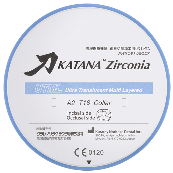 Ultra Translucent Multi-Layered: Ideálny materiál pre predné koruny a fazety, inlaye/onlaye a zadné sólo korunky. Katana UTML je zirkón s najvyššou priesvitnosťou na trhu. V tomto ohľade je porovnateľný so sklokeramikou.