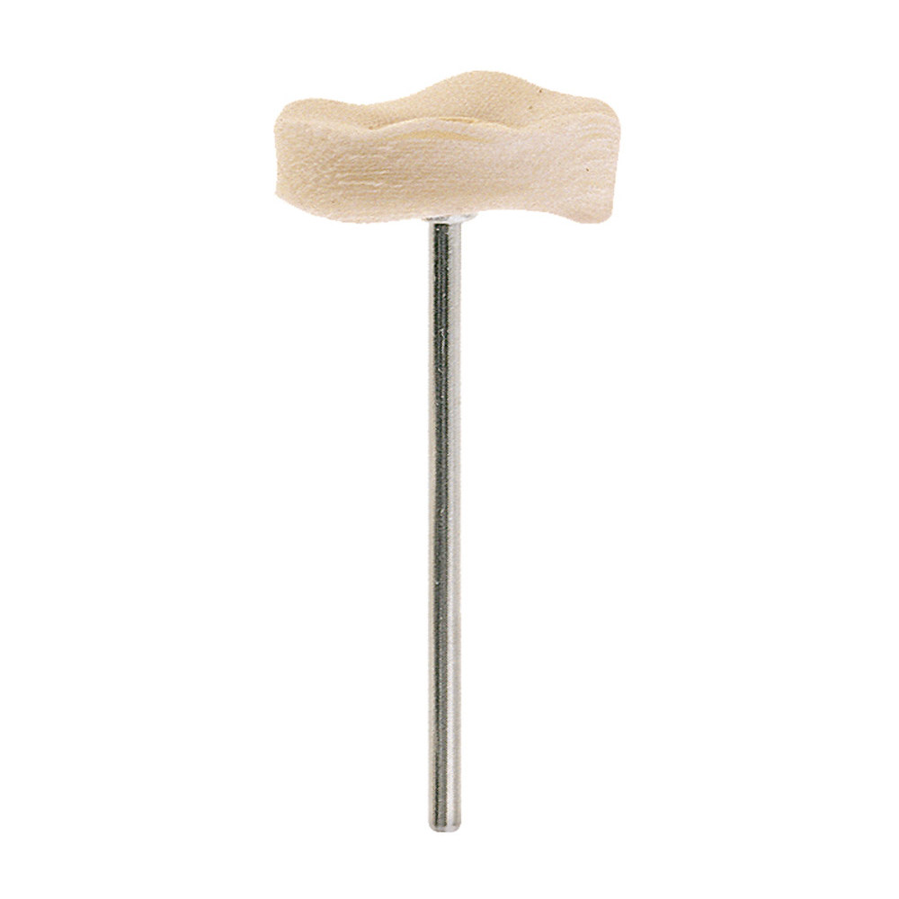 Leštiaci kotúč z mušelínovej tkaniny, priemer 22 mm, dĺžka strihu 6 mm, mandrel priemer 2,34 mm, 10 000 ot./min, priemer kovového jadra 10 mm. balenie 12 ks. Mandrel HP.