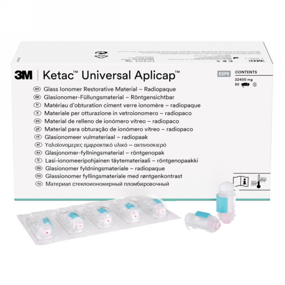 Výplňový materiál Ketac Universal Aplicap™ šetrí čas, vďaka eliminácii kroku aditívneho prekrývania - navyše poskytuje vyššiu kompresívnu silu a tvrdosť povrchu v porovnaní s inými skloionomérmi, ktoré tento krok vyžadujú. Pokrokové mechanické vlastnosti Ketac Universal umožňujú rozšírenie indikácií na aplikáciu rekonštrukcií v triede I a II. Ideálny na doformovanie pahýľov pred nanesením korunky, výplne mliečnych zubov, rekonštručné práce triedy I a II, ktoré nesú žuvaciu záťaž, výplne zubných krčkov pre dodatočnú estetiku, jedno - a viacplošné prechodné výplne alebo pečatenie fisúr.