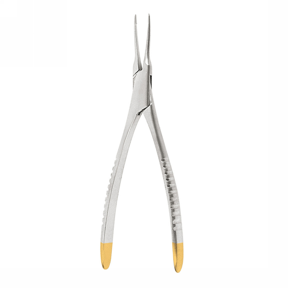 Kliešte z ušľachtilej ocele na odstránenie zalomených koreňových nástrojov, rovné, diamantované čeľuste, dĺžka 13,5 cm.