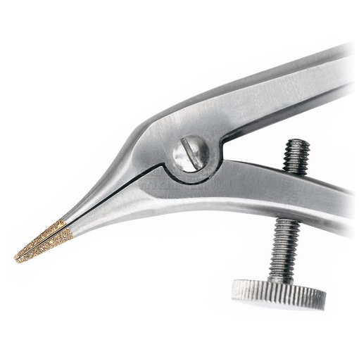 Nerezové kliešte na teleskopické korunky so skrutkou a s diamatovanými hrotmi, dĺžka 12,5 cm.