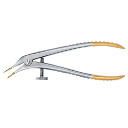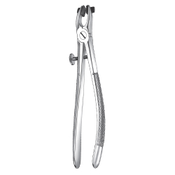 Nerezové endodontické kliešte na extrakciu koreňových fragmentov.