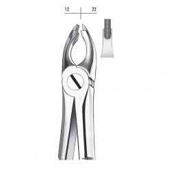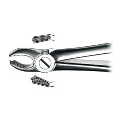Súprava 2 nerezových endodontických klieští na extrakciu koreňových fragmentov.