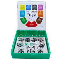 Sada 9 farebne rozlíšených svoriek na koferdam, bez krídelok – HySolate FIESTA 9W Colour Coded Wingless Clamp Pak