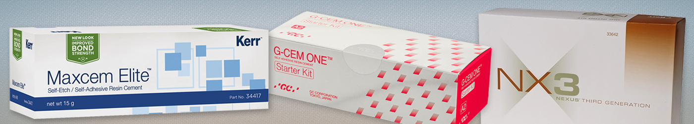 Kompozitné cementové hmoty od výrobcov ako sú Solventum, Kuraray Noritake, Coltene, GC a i. na lepenie a cementáciu protetických prác.