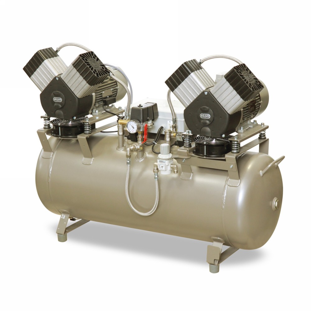 Kompresor s dvoma dvojvalcovými agregátmi na vzdušníku o objeme 110 litrov. Slúži ako zdroj čistého stlačeného vzduchu pre najrôznejšie aplikácie v laborátoriách. Nezávislé servisovanie agregátov zabezpečuje prácu kompresora bez prerušenia. Bez skrinky, s membránovým sušičom.