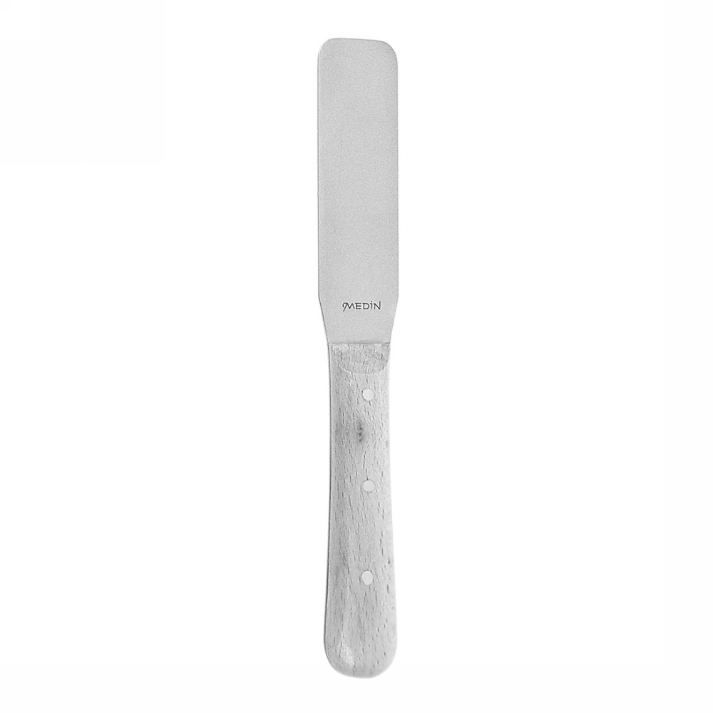 Lopatka na miešanie odtlačkových hmôt, dĺžka 21,0 cm, šírka 27 mm, ušľachtilý kov – oceľ, držadlo z tvrdého dreva