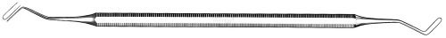 Obojstranný nástroj z ušľachtilej ocele na modelovanie výplňových hmôt v stomatológii.