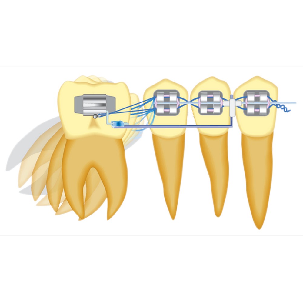 Pružiny na vzpriamovanie molárov pre systém OrthoEasy – súčasť flexibilného systému na mezializáciu, intrúziu a extrúziu molárov. Rozmer 0,018' alebo 0.022'. Balenie 10 ks.