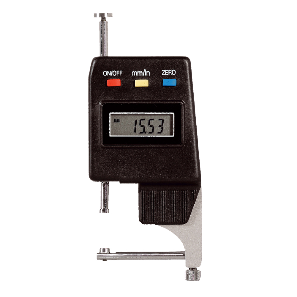 Digitálny merací prístroj na zišťovanie hrúbky stien koruniek. Presnosť na stotinu (0,01) milimetra. Vyžaduje batériu 1,5 V.