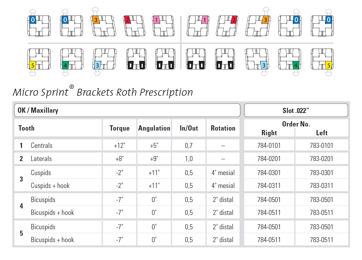 | 268950740 | Micro Sprint Roth .022 Bicuspids, T-7°, A0°, I/O0,5, R2°dist, L