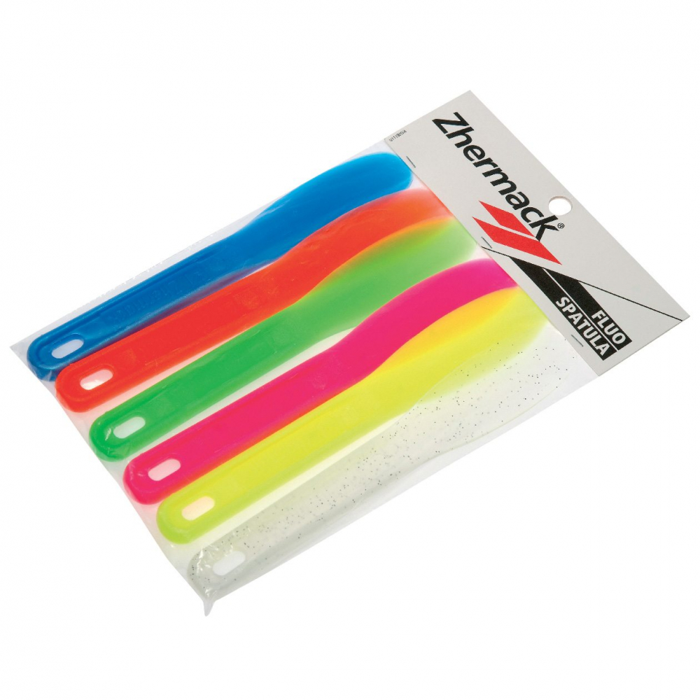 Plastové miešacie špachtle na alginátové odtlačkové hmoty, fluorescenčné farby, balenie 6 ks.