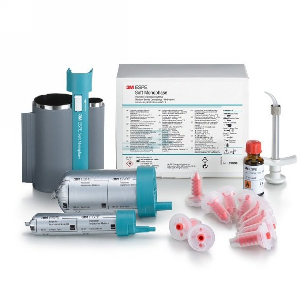 popis: Pre Pentamix™ 3: 3M™ ESPE™ Soft Monophase úvodné balenie – 1 Soft Monophase báza – 300 ml, 1 katalyst Soft Monophase – 60 ml, 1 kartuša Soft Monophase,10 Penta™ červených miešacích koncoviek, 1 striekačka Penta™ Elastomer, 1 adhezívum na lyžicu 17 ml Katalógové číslo výrobcu: 31802 |