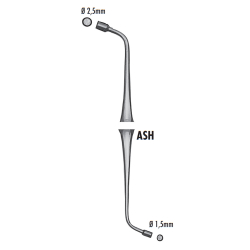 Obojstranný nástroj z nehrdzavejúcej ocele na modelovanie a spracovanie výplní, konce s rovnou plôškou s priemermi 1,5 mm a 2,5 mm, celková dĺžka 16,7 cm.