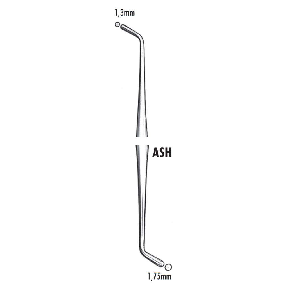 Obojstranný nástroj z nehradzavejúcej ocele na tvarovanie a stracovanie výplní, rozmer hrotov 1,3 a 1,75 mm, celková dĺžka 16,7 cm.