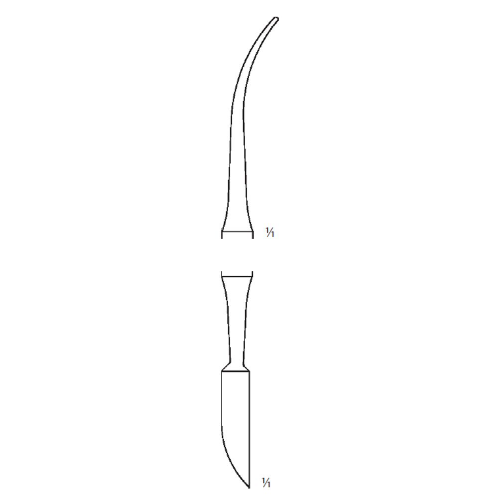 Obojstranný modelovací nástroj na výplne, rozmer plochých pracovných koncov 1,5 a 2,0 mm, dĺžka 17,4 cm.