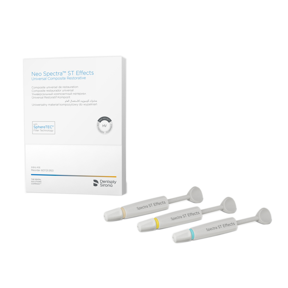 Obľúbený kompozitný materiál CeramX SphereTec One teraz pod novým názvom NeoSpectra ST s novými efektnými hmotami pre najvyššiu estetiku – úvodné balenie so striekačkami