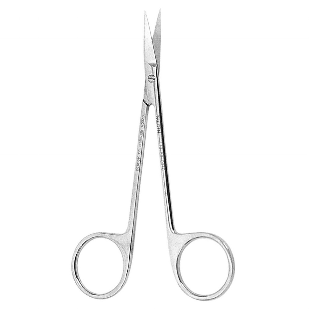 Nožnice z ušľachtilej nehrdzavejúcej ocele, na ďasno, zahnuté zahrotené 12,0 cm