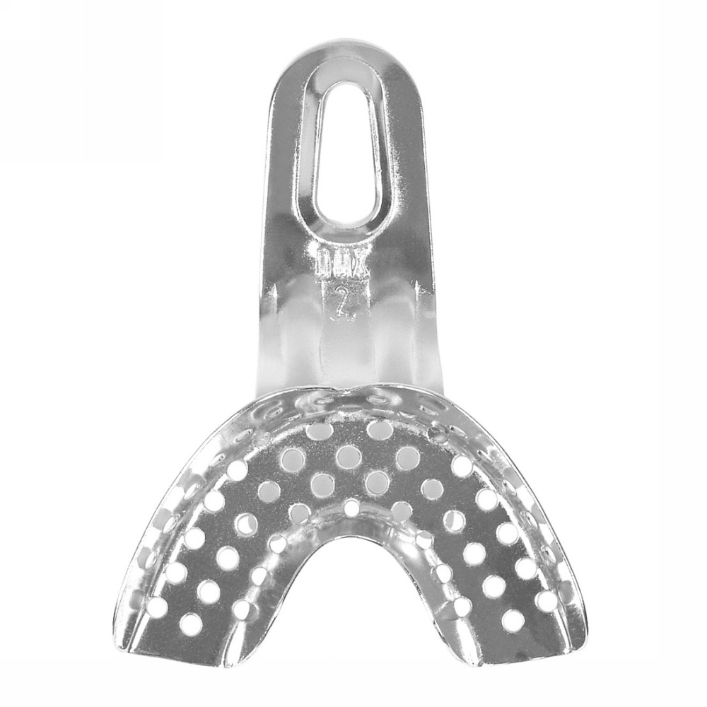 Perforovaná odtlačková lyžica z nerezovej ocele pre dolný detský chrup.