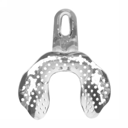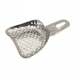 Nerezová perforovaná odtlačková lyžica na hornú čeľusť, veľkosť XL.