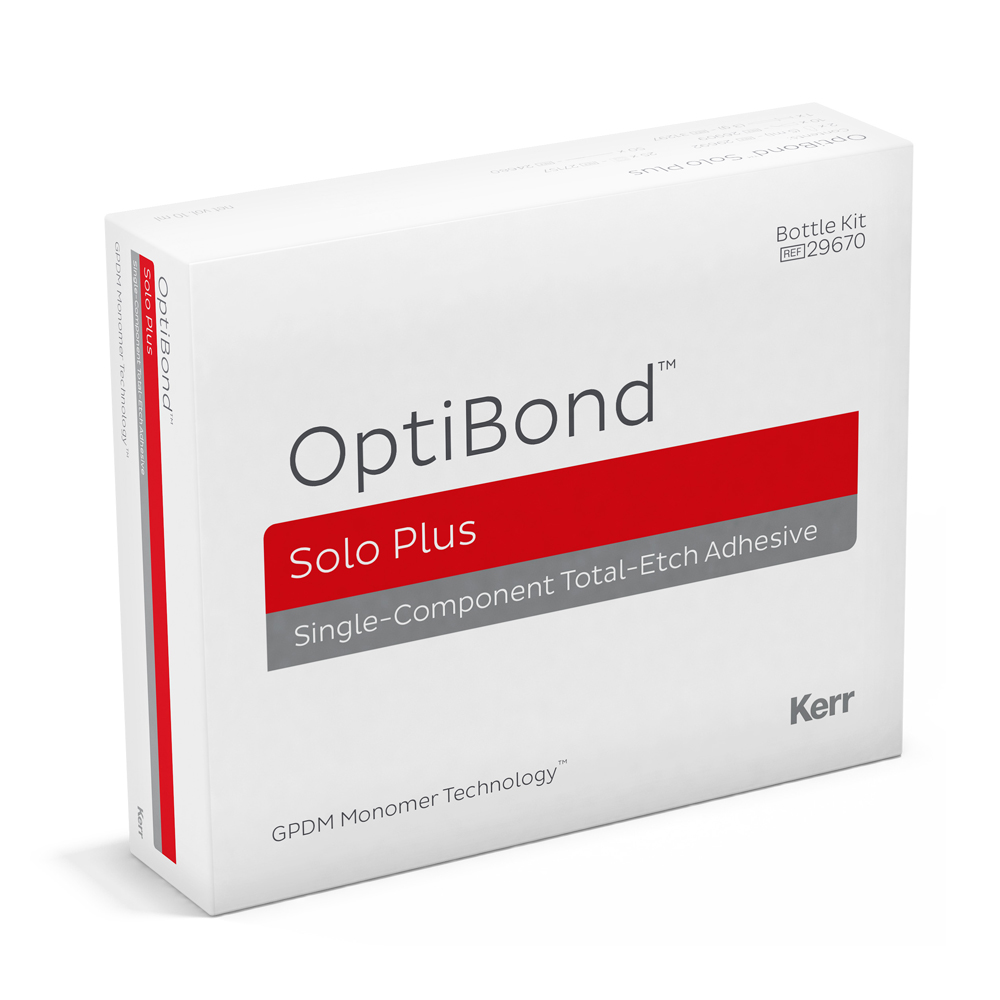 OptiBond Solo Plus je jednozložkové adhezívum, ktoré v jednom kroku kombinuje primer a adhezívum. Zmiešanie primeru a adhezíva v jednej fľaštičke bolo reakciou na potrebu adhezívneho materiálu, ktorý by sa ľahšie a rýchlejšie používal a ktorý by vykazoval rovnakú pevnosť a trvanlivosť pri celkovom leptaní.