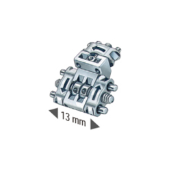 Trojrozmerná skrutka pre dolnú čeľusť. Umožňuje transverzálnu expanziu a zároveń protrúzny pohyb.