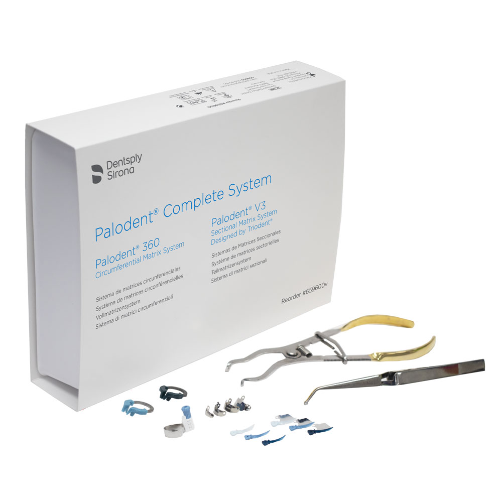 Systém Palodent®V3 je inovatívny systém sekčných matríc s niklovo-titánovými krúžkami, anatomicky tvarovanými matricovými pásikmi a adaptívnymi samovodiacimi klinmi, pomocou ktorých je možné zhotoviť predvídateľné, tesné kontakty a výplne, ktoré presne kopírujú prirodzenú anatómiu zuba.