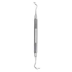 Obojstranný modelovací nástroj na výplne, rozmer plochých pracovných koncov 1,5 a 2,0 mm, dĺžka 17,4 cm.