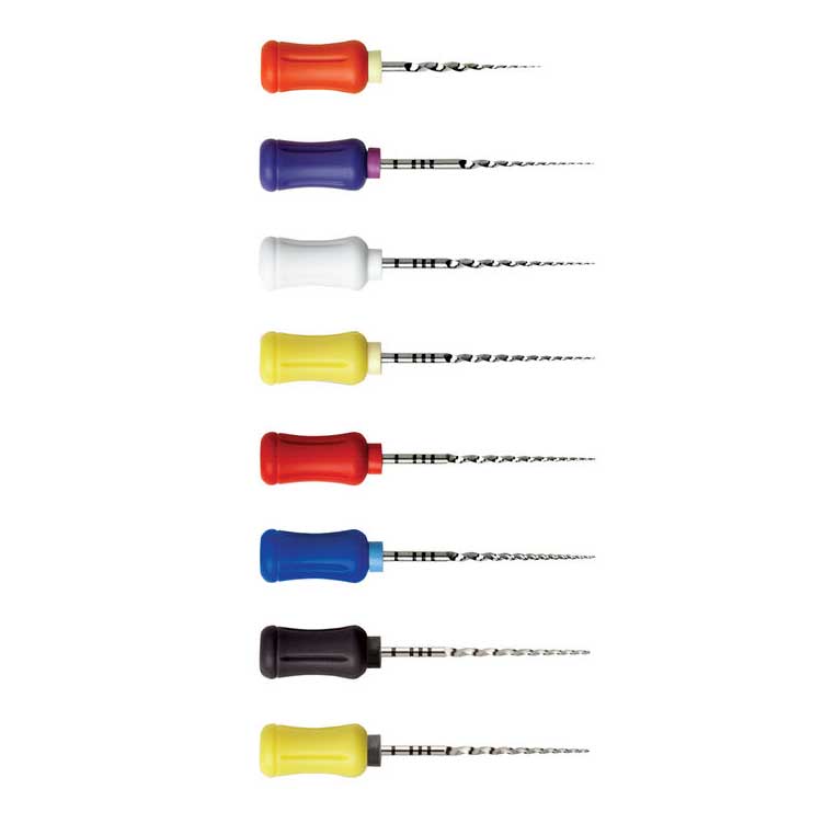 Obľúbené ručné endodontické nástroje s ergonomickou rúčkou. 6ks nástrojov v balení (sortimenty alebo jednotlivé veľkosti). V dĺžkach 21, 25 alebo 31 mm.