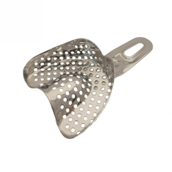 Nerezová odtlačková lyžica, perforovaná, horná.