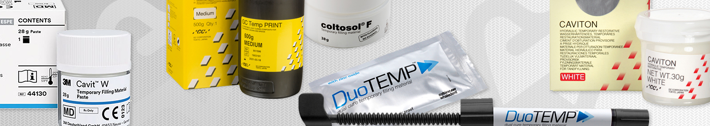 Rôzne materiály pre dočasné zaplnenie kavity na báze zinkoxidu alebo živice.