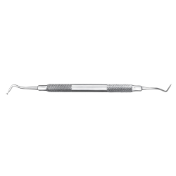 Obojstranný nerezový nástroj na odstraňovanie provizórnych výplní, dĺžka 17 cm.