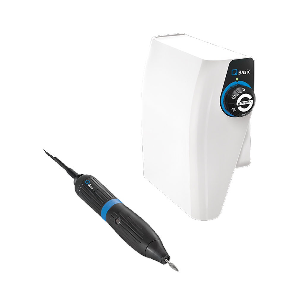 Q Basic je základná modelová rada mikromotorov Schick. Mikromotor Q Basic predstavuje kompaktnú triedu veľmi kvalitných motorov s variabilným rozsahom otáčok. Verzia s kolenným ovládaním.