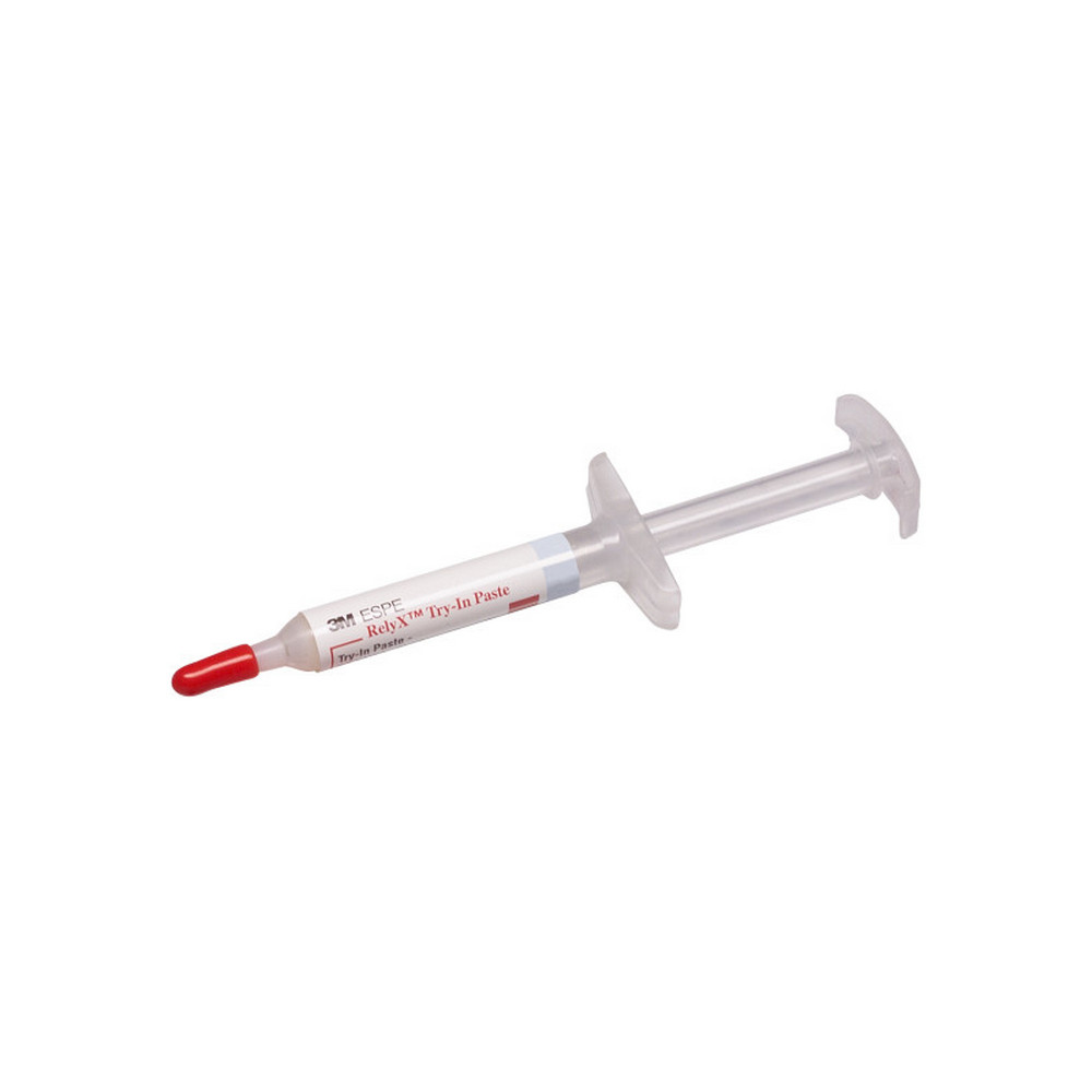 3M ™ RelyX ™ Try-in pasta je skúšobná pasta (tzv. "Try-in" pasta) pre RelyX ™ Veneer. Skúšobná pasta (tzv. "Try-in" pasta) je vodou zmývateľná a bez rezíduí. Zaisťuje presnú voľbu farby, aby bol pacient spokojný s konečným výsledkom.