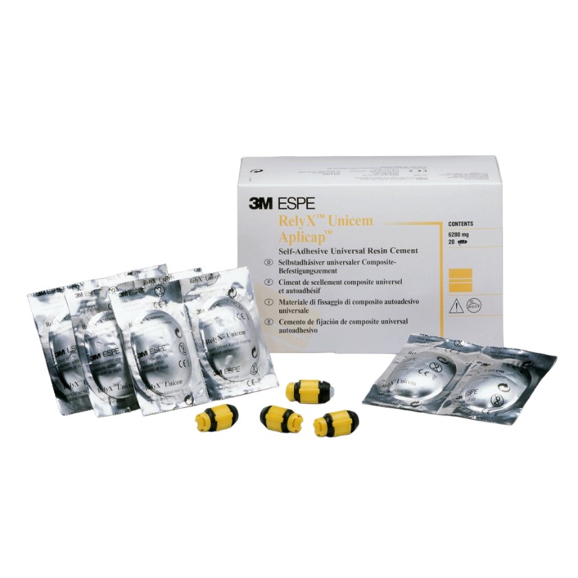 Samoleptací samoadhezívny cement RelyXTM Unicem sa dodáva v pohodlnej kapsľovej aplikačnej forme AplicapTM/MaxicapTM od 3M ESPE.