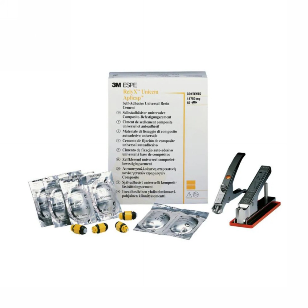 Samoleptací samoadhezívny cement RelyXTM Unicem sa dodáva v pohodlnej kapsľovej aplikačnej forme AplicapTM/MaxicapTM od 3M ESPE.